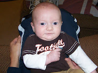We carved a pumpkin on Monday! Madison was not sure about it at first but soon decided it was fun! At first she kept saying "I want Daddy to do it" when we'd tell her to dig the guts out! After watching Trent and I do it a few times she decided she'd give it a try. Cooper slept in his chair the whole time. We had been out running errands right before and he fell asleep. I decided to leave him in there until we were finished so that we could all participate. Really, Trent did most of the work while Madison and I watched! :)