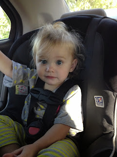 If she manages to get in the car before you can get her into her car seat good luck getting her. She usually runs straight to the back and sits in the chair and WILL NOT come back up. You have to crawl back there and drag her limp body back up to her seat. This particular day Madison blocked her from getting in the back so she ran to the other side of the van and squeezed herself between the door and her car seat. Look how proud she is. In the moment it is so frustrating but it does make me laugh. I know one day I will look back fondly of the messes and crazy antics.